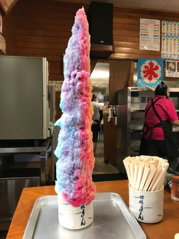 相信大家最近都很有感天氣真的非常熱吧?緯度比我們高的日本現在也正面臨著酷暑,在這種炎熱的天氣,最適合來碗冰冰涼涼的刨冰了!不過最近日本的一家餐廳就推出了一款「巨無霸彩虹刨冰」,這高到嚇人的高度讓人看了都目瞪口呆!