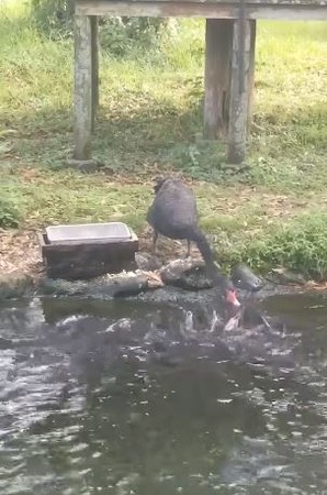 在很多人的觀念中,魚鳥是無法和平共處的,鳥類大部分都會吃魚跟昆蟲,也只能說「海鳥和魚相愛,只是一場意外。」但在日本宮崎市的動物園,卻出現一個詭異的畫面,只見一隻黑天鵝竟然一邊吃飼料一邊低頭餵著池塘裡的魚,這讓不少遊客相當驚艷,「顛覆自己對動物的認知啊!」