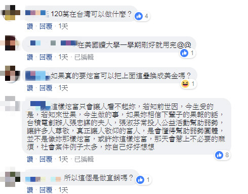 不過這名女子還不斷在留言區狂嗆網友,聲稱自己的錢都是自己賺來的: