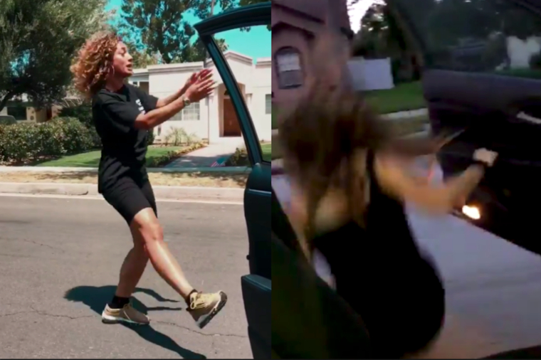 影/网路疯传「从移动中车子跳出」挑战 正妹一踏出去就后悔了