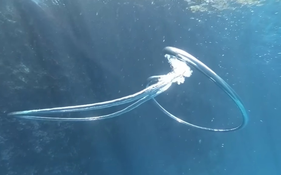 大自然真的很奇妙,總可以帶來許多讓人驚艷的東西,像是美麗的珊瑚礁島、夜晚會發光的藍眼淚海…等,都是大自然帶給人類的禮物呢!近日西班牙一位潛水夫拍到了難得可見的「氣泡合體秀」,兩個甜甜圈狀的氣泡在水中合為一體,變成一圈更大的泡泡,讓網友看完都直呼「真的