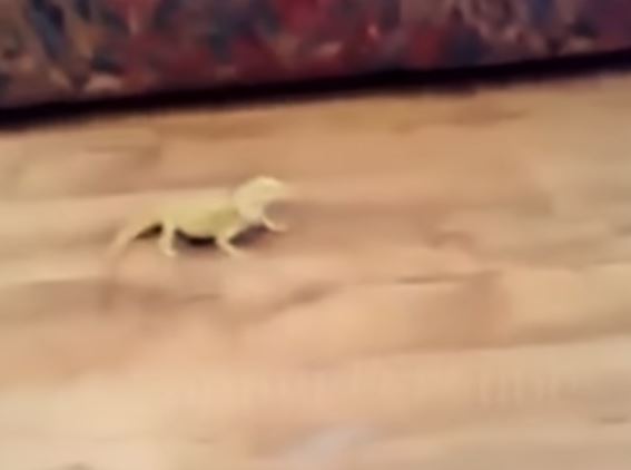 而猫咪离开后,现场剩下一只困惑的鬣蜥,明明什么事都没做,这只小猫咪竟然被牠吓成这样,相信鬣蜥应该也是丈二金刚摸不著头脑吧!