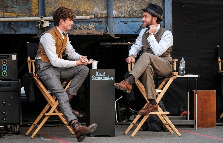 14. 艾迪瑞德曼 (Eddie Redmayne) 和裘德洛 (Jude Law) 在拍攝《怪獸與葛林黛華德的罪行》現場。
