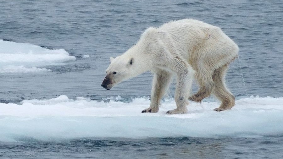 當時一位加拿大的攝影師保羅‧尼克蘭(Paul Nicklen)在鏡頭下拍到了一隻受到不行的北極熊在已經生鏽的垃圾桶裡面翻食物吃,而很可惜的當中並沒有能吃的東西,所以失望的北極熊只好坐在一張破舊的毯子旁邊啃食垃圾。但沒想到這照片PO出後竟然有很多網友開始罵聲不斷,表示北極熊快餓死了,為什麼不出手幫忙!