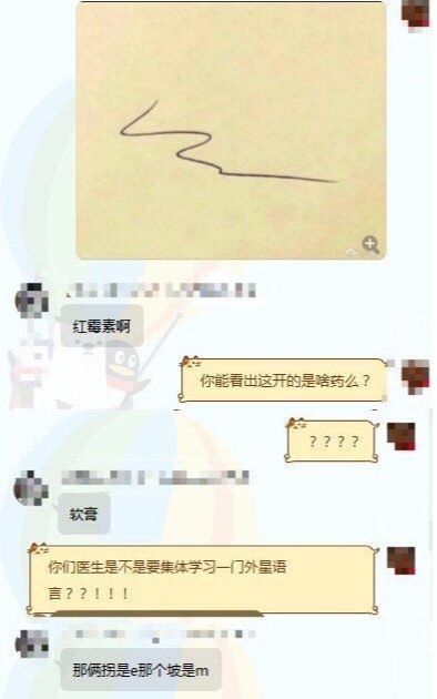 對大家來說這符號是不是都像一樣的東西呢?而大陸也有人因為這樣貼出了一個醫生寫的處方簽給醫師們看,沒想到大家都回答出一致的答案:「紅黴素軟膏」真的十分有趣。而爆廢公社貼文下的網友留言表示:「 原來是這樣阿,但是現在開始電腦化了!」、「我外婆家這邊的診所醫生,也還在用手寫病歷,也是這樣鬼畫符,他八十幾歲了~」、「還以為是寫的很草的英文,原來根本不是!」、「這個跟俄文草寫到底哪個比較難學啦?」