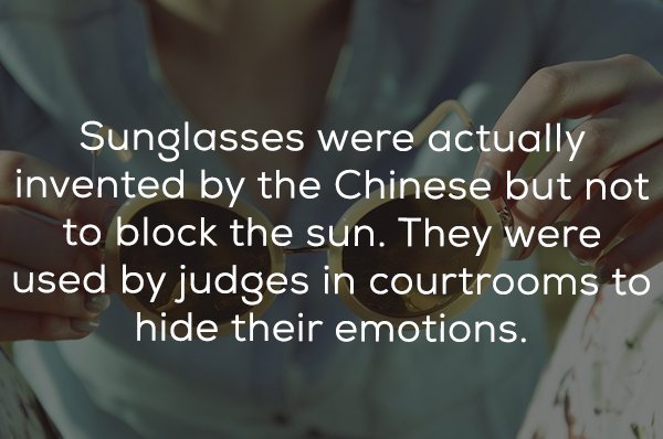 11. 「墨鏡其實是由華人發明的,但原本的用途不是為了遮擋太陽,而是給法官在法庭中掩飾自己情緒的用品。」