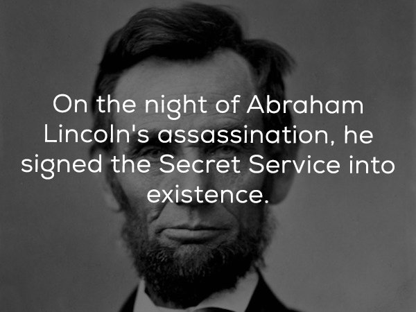 13. 「在林肯被暗.殺的那晚,他同意簽署了讓訓練特工的美國特勤局 (United States Secret Service,簡寫USSS) 成立。」