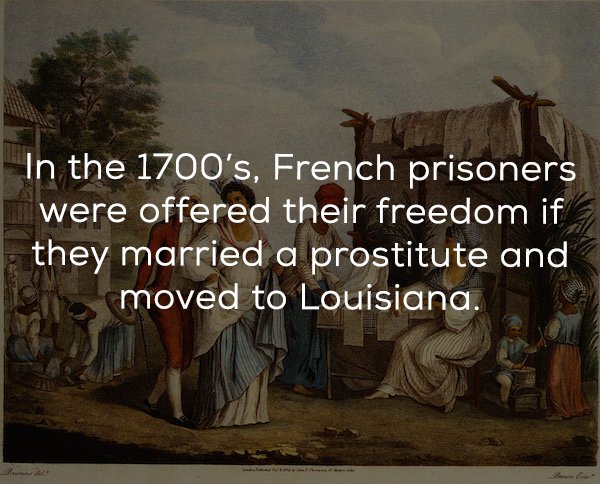 14. 「在18世紀,法國的囚.犯如果娶了妓.女,然後搬到墨西哥沿岸的路易斯安那州的話,就可以獲得自由。」