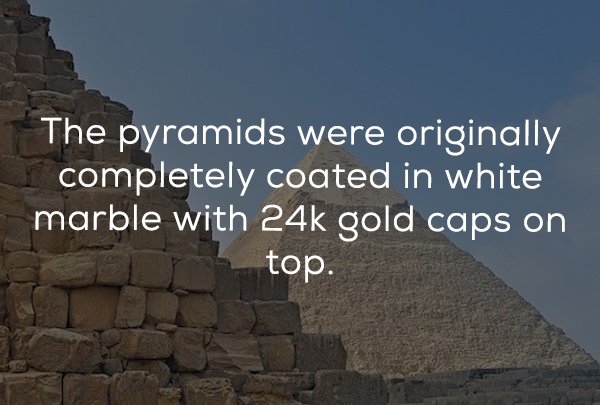 18. 「這些金字塔的外觀本來是打算用白色大理石覆蓋,頂部再用24k的金點綴的。」