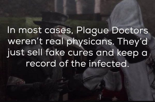 7. 「在大部分的情況下,瘟.疫.醫生都不是真的醫生。他們會賣假的處.方,然後把感.染的人紀錄下來。」