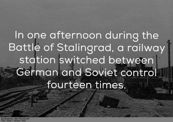 8. 「在史達林格勒戰.役中的一個下午,一座火車站在德國與蘇聯的控制下換了14次軌道。」