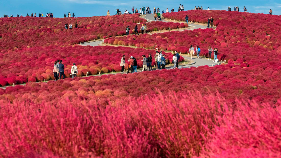 8. 日本茨城縣的國營日立海濱公園,每年10月時地膚會由綠轉紅,變成夢幻的場景。