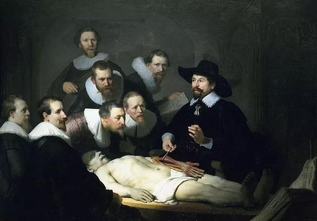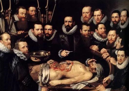 後來倫勃朗大師畫了一張米歇爾·凡·米雷弗特的解剖課堂,可以看到一堆人圍觀解剖的過程,讓人不禁覺得中世紀的醫學技巧,真的是很恐怖耶!可是如果沒有經歷過這些,醫學似乎也是沒辦法進步,所以今天你們看到的每一幅歷史畫作,其實都是醫學進步的過程,雖然很恐怖,但也是無法避免的。