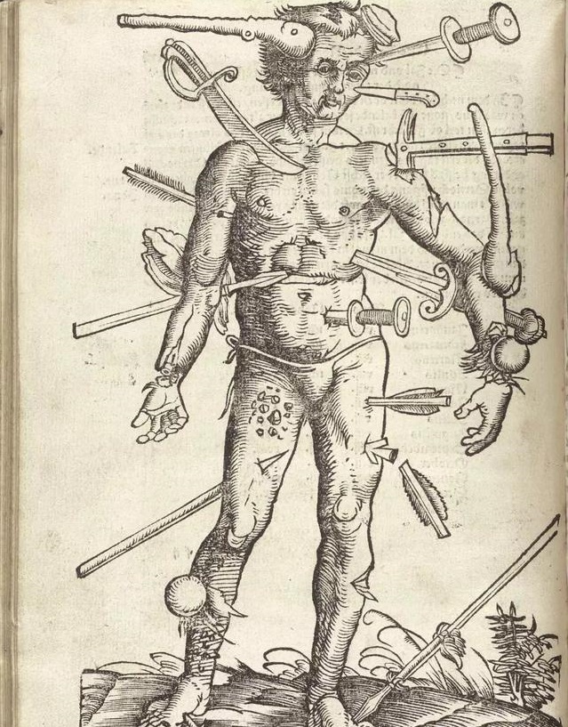 漢尼拔桌上這幅畫,記錄了中世紀的人身上,可以接受的被受傷的地方,當時的人還稱這幅畫為「受傷的男子」,這幅畫基本上是沒有什麼功用,就只是純粹告訴你,人類可以有哪些死法,但這幅畫也確實成了中世紀醫學的「黑歷史」。