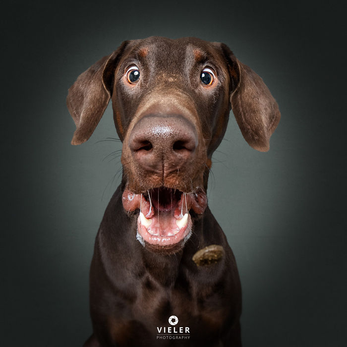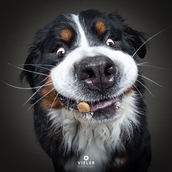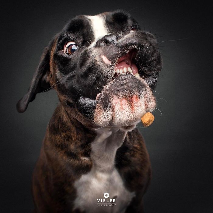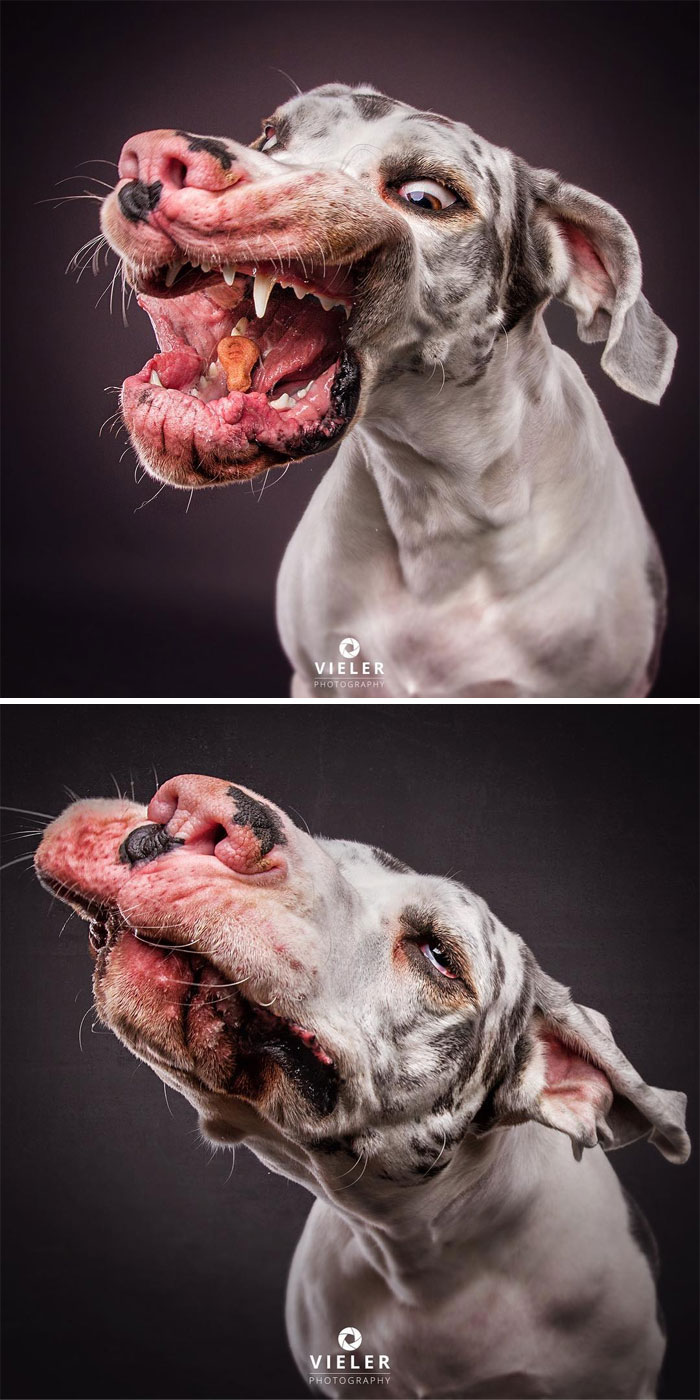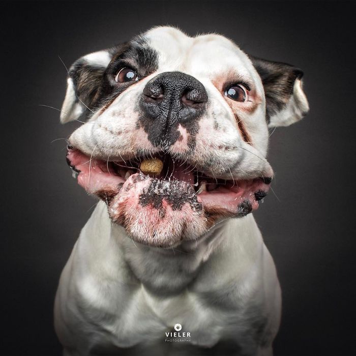 攝影師克里斯蒂安維勒(Christian Vieler)專注於毛小孩們那種最純粹的快樂時刻,所以他捕捉了狗狗努力接住空中食物的動態定格照,這些表情都是完全肆無忌憚的幸福啊>< 以下我們就為大家整理了25張狗狗接食物的「臉部肌肉失控」照,一起來看看這些照片有多爆笑!