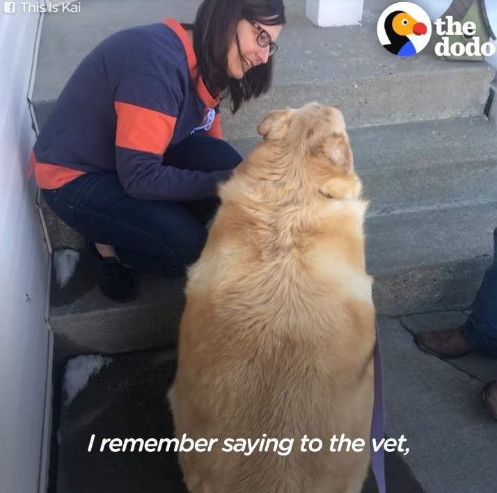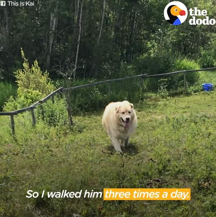 Kai被領養後,走幾步就已經大喘氣,趴下去不願走,讓新主人Pam非常難過。不過獸醫說,Kai必須至少減掉45公斤!