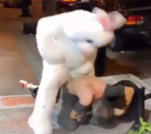 影/街上男子對女友亂來!復活節兔兔幫忙教訓「超喜感影片」笑翻網友:真人版勁量電池無誤