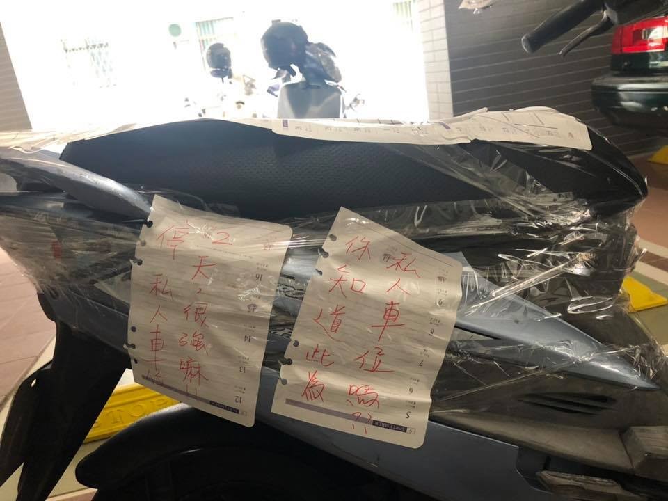 這個車主A4貼了4張「私人」、「車位」、「請勿」、「停車」,還有「已報警,警方請我以此告知你」、「私人車位,請勿停車」等等,超爆滿的「叮嚀小語」貼滿機車各角落,根本360度全面提醒,車主想沒看到也不行!隨後這名車主看到自己的機車變成這幅「慘況」後,默默的把車移到隔壁車格,車上的警告也沒有清乾淨。許多網友看了照片後都大讚這位網友,留言表示:「太帥了,就是要這樣他們才會怕!」