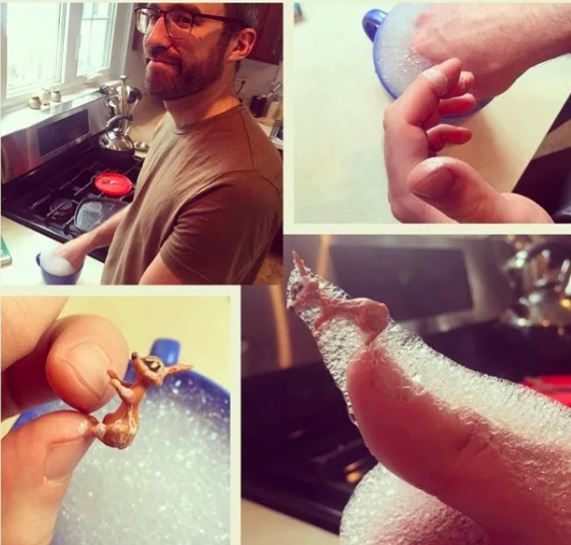 9. 他的手指很不幸地碰上了瘋狂膠。