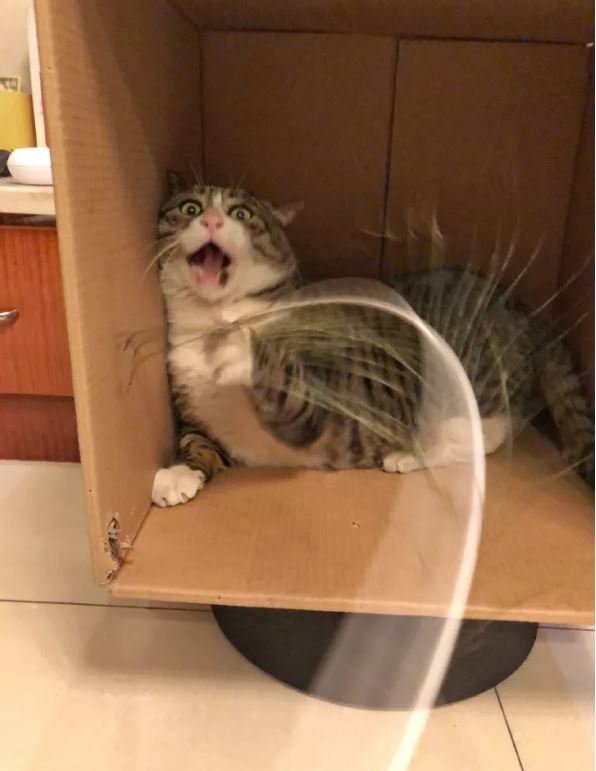 沒錯就是牠,牠是來自中國江蘇省的貓咪阿肥,根據報導指出,阿肥原本是一隻流浪,總是很慵懶地躺著睡覺,但不同於其他流浪貓的是牠對逗貓棒的反應特別大,甚至能說大到……一看到就ㄎ一ㄤ掉啦。
