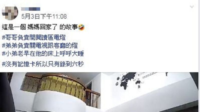 原PO在「爆廢公社」分享了一支影片並寫到「這是一個媽媽回家了的故事」,從畫面中可以看見兩兄弟一開始都在專心看電視,當他們突然發現有人回家時便馬上跳起來,然後開始分工合作「還原現場」,原PO還描述到「哥哥負責開閱讀區電燈」、「弟弟負責關電視跟客廳的燈」、「小弟老早在他的床上呼呼大睡」,兩兄弟合作無間的畫面讓人爆笑。