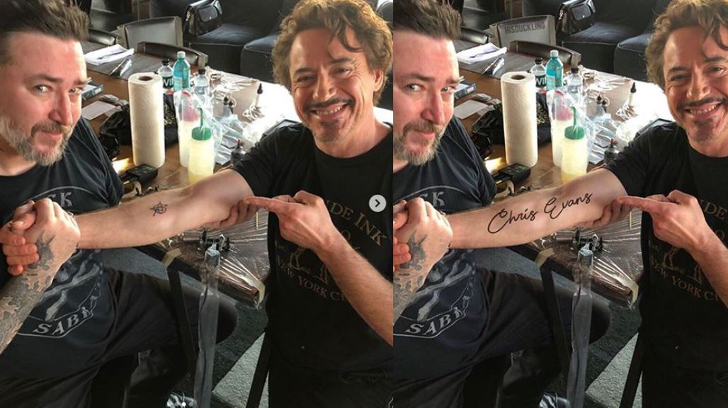 「鋼鐵人」和「美國隊長」雖然在電影裡面偶爾會產生摩擦與不和,但其實他們在戲外的感情卻相當要好!例如以下這張刺青圖,雖然是網友把「鋼鐵人」手上的「復仇者聯盟」刺青P成「美國隊長」的真實姓名Chris Evans,但「鋼鐵人」似乎對於網友的後製相當滿意,甚至還親自轉發了這張照片。