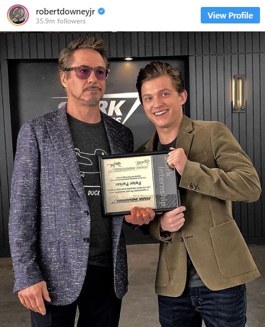這對猶如父子檔的「鋼鐵人」以及「蜘蛛人」看起來感情相當要好,而更好笑的是,「蜘蛛人」在拿著證書跟「鋼鐵人」合照時,竟然連證書也拿反了,畫面讓人爆笑。