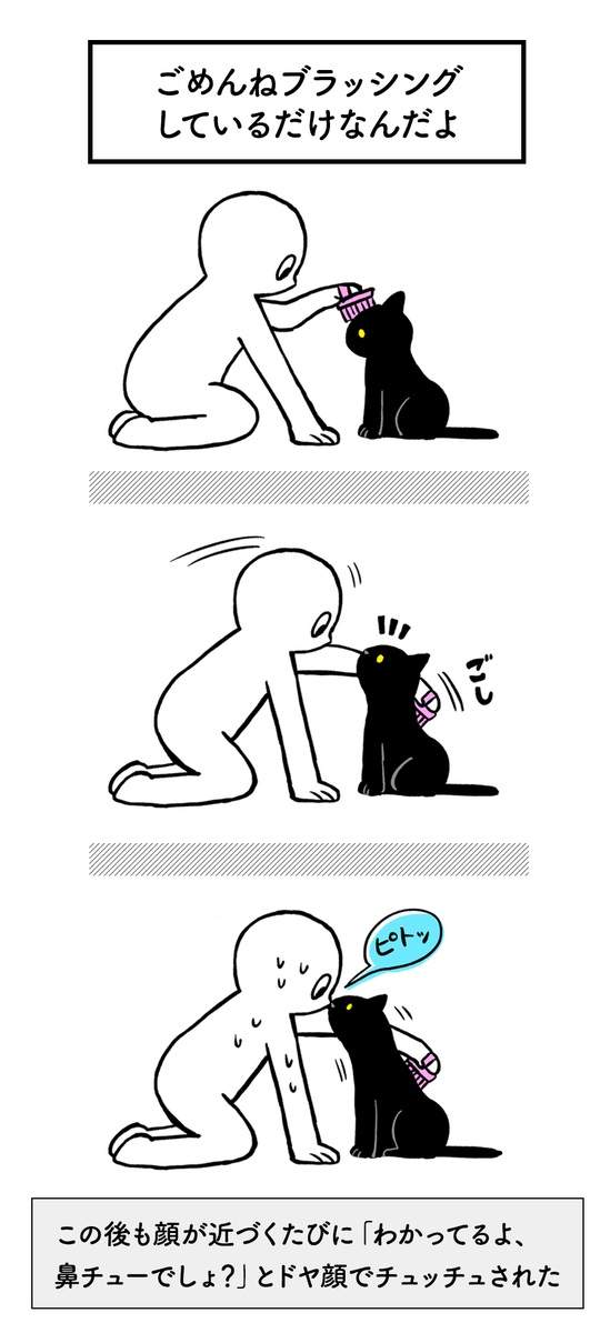 不然就是在帮猫梳毛时,因为脸会离猫咪越来越近,没想到这时猫咪竟然会露出一脸:「好啦,我知道你想磨鼻子。」的脸,然后就自己把鼻子凑上来,亲密地亲了主人一下,当然这也让主人不知所措,一时不知该怎么接招。