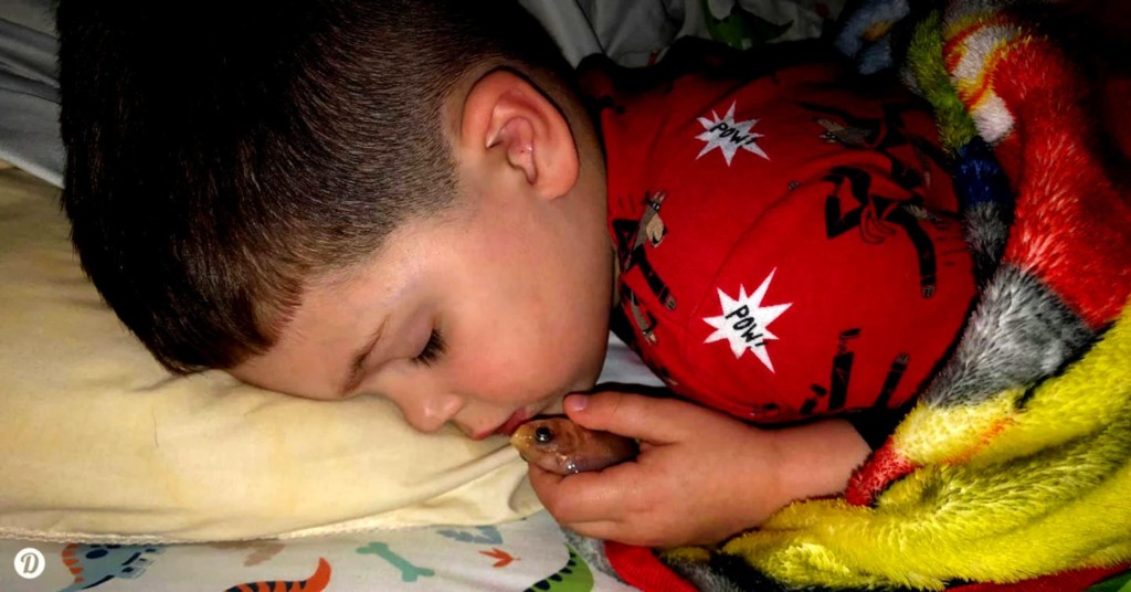 小朋友的世界是大人無法想象的,有時候他們天真的想法也會造成一些意想不到的事情。國外一位媽媽最近在臉書上分享了一件讓人哭笑不得的事情,那就是她4歲的兒子因為太喜歡自己的寵物所以想要跟牠一起睡覺,這做個法對狗狗或貓貓來說或許沒什麼問題,但如果那隻寵物是一