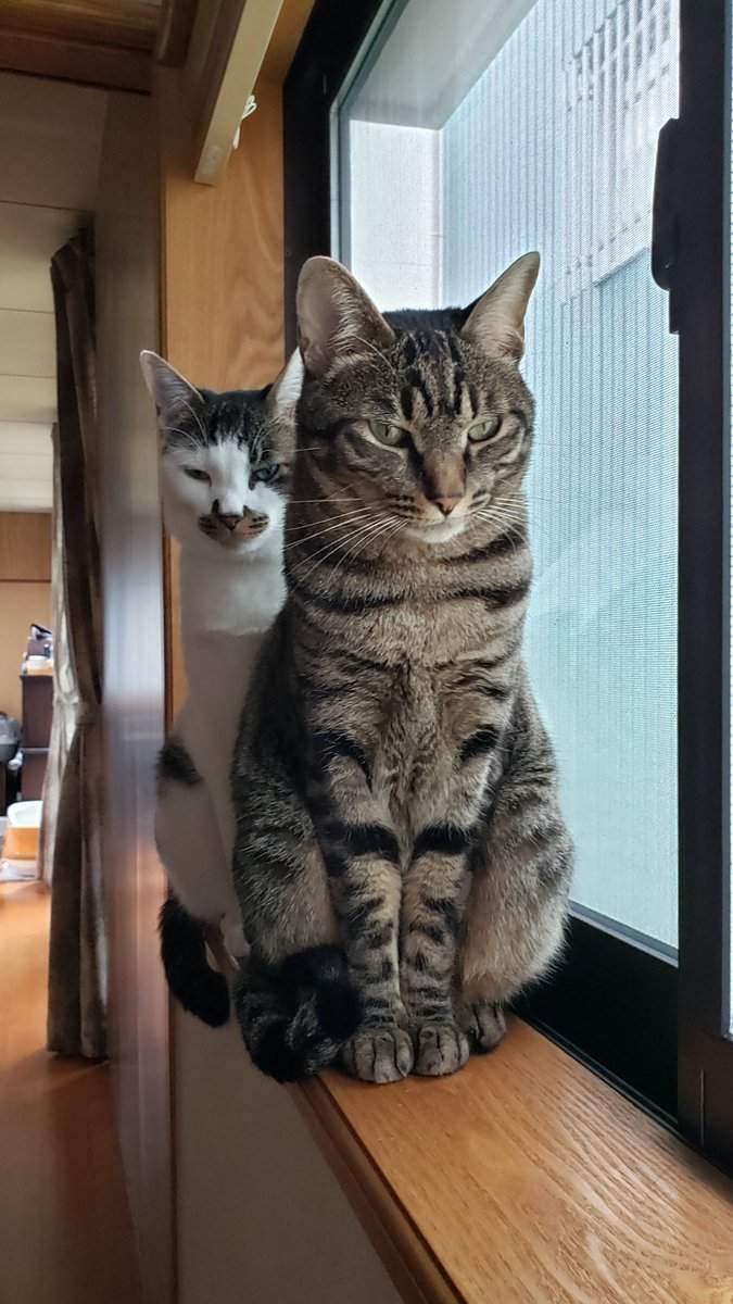 原來有那麼多貓咪喜歡躲在夥伴的背後!