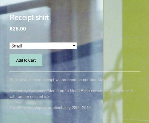 现在市面上有各种千奇百怪的T恤,从肌肉猛男6块鸡造型到吃泡面造型都有,不过现在居然连收据都可以变成T恤的图案……。美国摇滚乐团Vasudeva今年在日本东京、名古屋、京都巡回演唱会。没想到回到美国之后,他们居然把在日本全家收到的收据做成T恤……