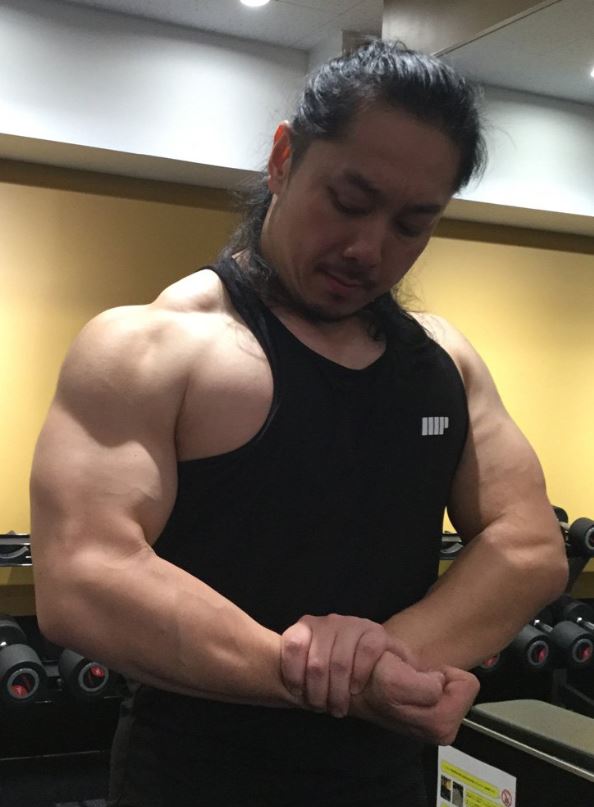 他自己,藝術家本人,就是這麼壯!話說這胸肌也大得太不科學了吧媽咪喔……手臂二頭肌也是壯到一個不行,根本就是帥版的館長型藝術家!!