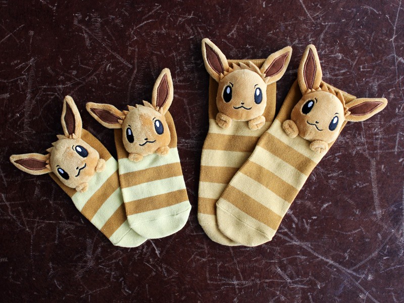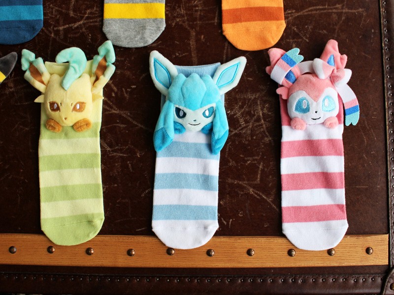 伊布家族的這系列大頭襪是最新上市的商品,除了伊布本身之外,還有水精靈、雷精靈、火精靈。