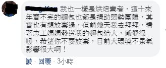 消息一出馬上吸引1.4萬網友為老闆打氣,也有同業留言相挺,表示自己也常常捐麵包,希望他不要放棄。