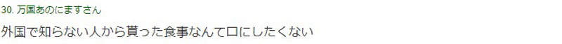 「在外國被陌生人送食物才不會想吃。」
