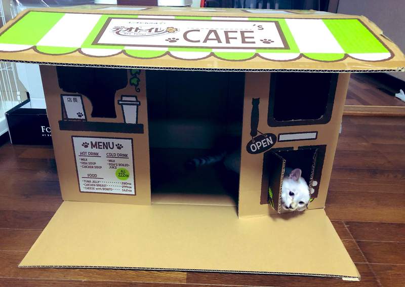 家裡有養貓的大家一定知道貓咪最愛的就是箱子,只要看到任何空箱子,牠們都會忍不住把自己塞進去待著,但你知道只要在這些箱子上稍微動手腳,就能為貓咪打造一家咖啡廳了嗎?日本嬌聯目前就推出了「DeoToilet」貓砂盆裝商品用的紙箱,為了響應貓咪愛紙箱的天性,商家還在紙箱開口處加上了咖啡廳的圖案,所以當貓咪一旦進入紙箱時,就瞬間化身為咖啡廳店長啦!