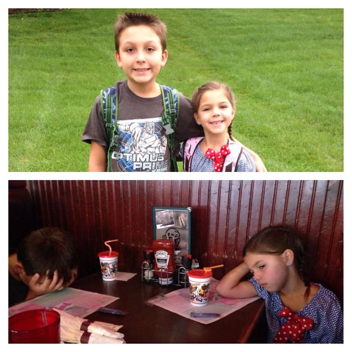 小编加码送上国外小孩的开学第一天的照片(虽然很可怜,但真的太好笑)。