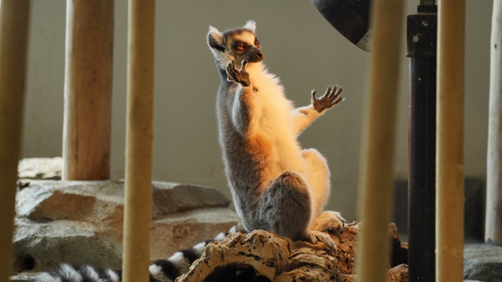 这只狐獴一开始看起来还算正常,想不到下一秒竟然呈现坐姿,手比出了诡异的手势,眼睛微瞇呈现一个迷离的状态……