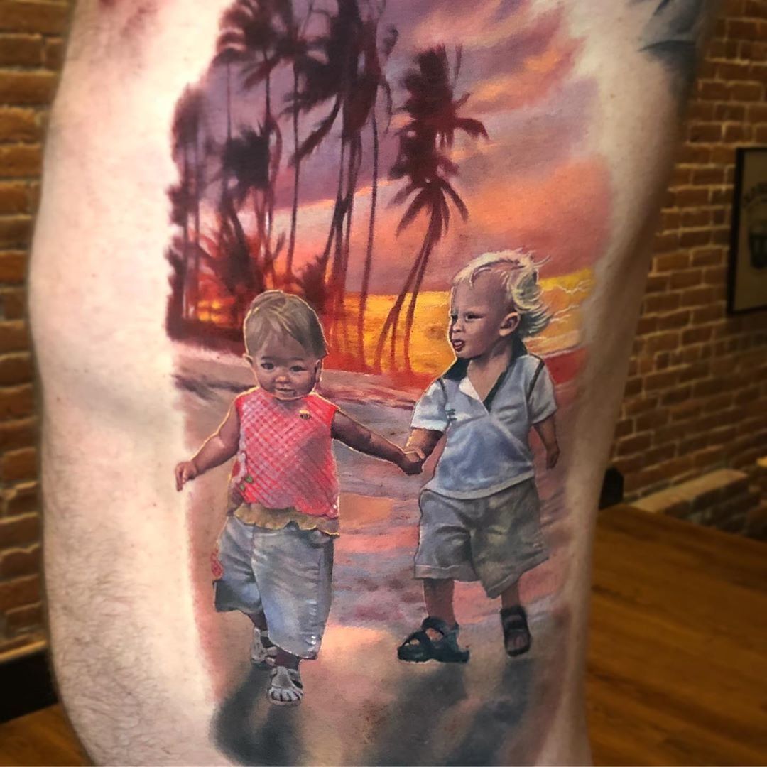 最后为大家送上这幅除了风景和视觉错乱图案外,另一个看起来很温馨的小朋友刺青吧!是不是觉得Jesse完全可以驾驭任何的风格呢!网友们看了他的刺青以后纷纷大赞「是独一无二的作品啊!」、「简直是艺术品,太惊人了吧?」
