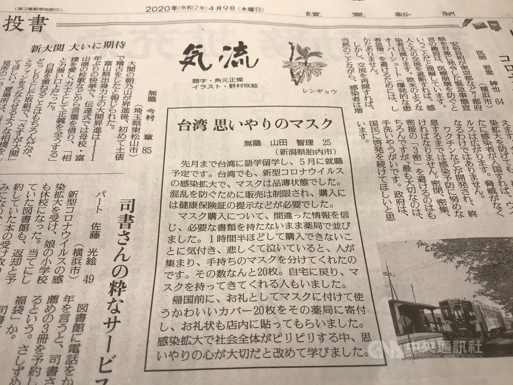 这件事情让山田智理非常感动,在她返回日本前,还特地捐了20片造型可爱的「口罩套」给药局,附上感谢信让药局贴在店内,这样当初帮过她的人经过就可以看到。现在山田智理已经回到日本,不过她依然记得台湾人善良的心,所以以「台湾 温馨的口罩」为主题,投稿日本的「读卖新闻」(日本发行量最大的报纸) 跟日人一同分享她上个月到台湾学中文遇到的这份感动。