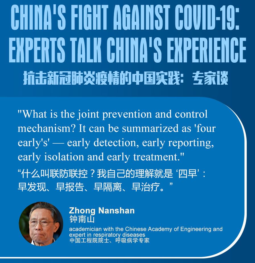 「什麼叫聯防聯控?我自己的理解就是"四早":早發現、早報告、早隔離、早治療。」–中國工程院院士、呼吸病學專家鍾南山