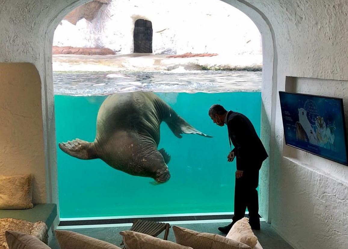 根據《每日郵報》報導,「Pairi Daiza Resort」度假村就以主打大自然而聞名,每一間客房都有一個玻璃窗,讓遊客可以透過窗戶看到各種野生動物的日常,其中最受矚目的就是海象啦!
