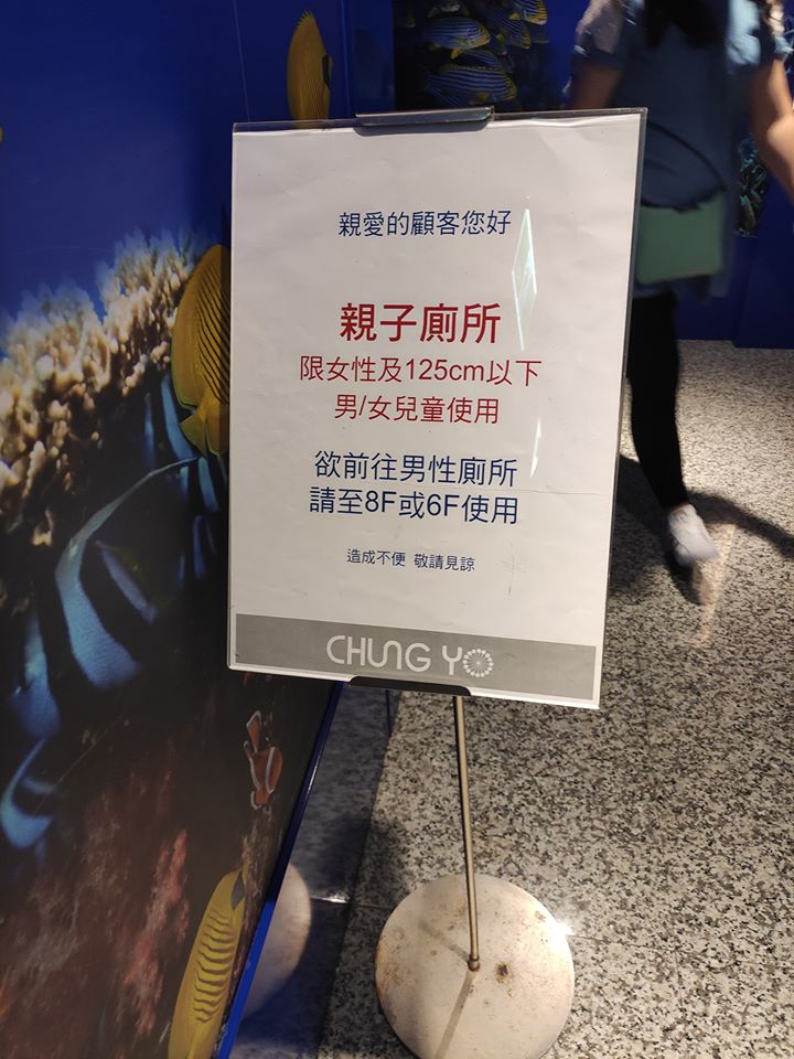 這位爸爸在《爆怨公社》表示,自己日前帶著三位孩子想要使用親子廁所,當他解釋自己只有一個人但要帶孩子進廁所,清潔人員竟然還用身體阻擋在門口不讓他進去,這個舉動讓他超納悶。他也在貼文分享照片,只見照片裡的告示牌有寫著「親愛的顧客您好,親子廁所限女性及125cm以下男/女兒童使用;欲前往男性廁所,請至8F或6F使用」,但另一張照片裡的指導圖案卻顯示了一對爸媽在牽著小孩。