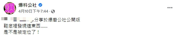 一名網友在臉書「爆料公社」表示,把一雙舊鞋的鞋底撕開後,發現裡面竟藏著電路板,還有許多電線連接著,懷疑自己是不是被定位了?