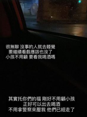 黃女離譜行徑被網友看見後轉發到臉書社團《爆料公社》造成熱議,也引來眾人痛批她虐//嬰的行為,有熱心網友幫忙報警和通報社會局,沒想到事後黃女在IG發文反嗆「你們有議論去找她爸說,不是因為他不付錢,我也不會壓力那麼大」、「其實托你們的福,剛好不用顧小孩,正好可以出去喝酒,不用拿警察來壓我,他們已經走了」。