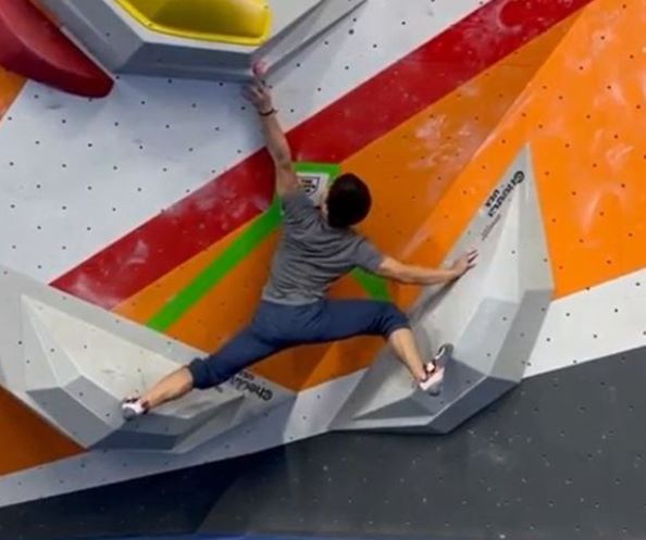 国外知名论坛Reddit一段攀岩影片引起网友们热议,画面中一名亚裔男子先是开心地向攀岩同好们打招呼,浑身充满活力,接着转身跳上室内攀岩墙,没佩戴安全绳,不费吹灰之力就爬上最高处,过程仅用了不到30秒的时间。