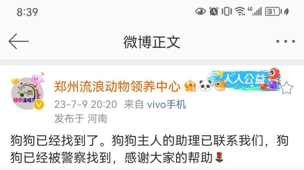 果然,郑州流浪动物领养中心不到半天就发布消息,指出「天狼」已经被找到,杨男也已将爱犬领回,不过知情人士透露,杨男最后只给了帮忙找到狗的民众5000元奖金 (约新台币2.1万),而他之所以会悬赏1000万,只是为了找回爱犬制造的噱头罢了,「天狼」是否真的为退役军犬也不得而知。真相曝光后,不少网友气炸挞伐,「以公告悬赏,具有法律合约效应,其实可以走法律途径要求履行」、「这算是诈骗吧!发公告悬赏本身就是一定的公开承诺,这样就能轻松了事,那以后诚信何在」。