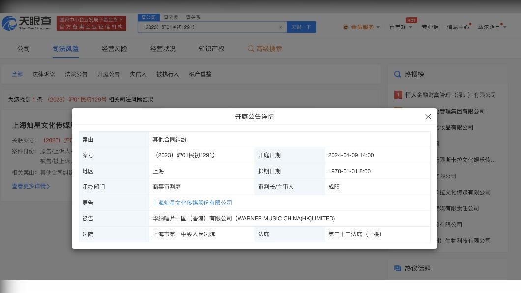 如今「灿星文化」正式向李玟经纪公司华纳唱片提告,并公告一则开庭消息,案由为「其它合同纠纷」,预定于2024年4月9日在上海开庭审理,不过案件细节没有对外公开。