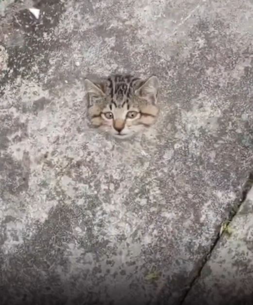 根據中媒《三湘都市報》報導,中國廣東省有民眾在路上被一顆靜止的貓咪頭嚇到,本來以為是有歹徒傷害小動物,走近檢查才發現貓咪還活著,只是不小心卡在水溝孔,水泥蓋下面的身體太胖卡住了。