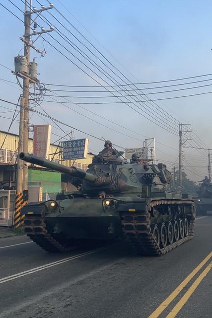 没想到贴文钓出许多同样目击坦克游街的网友回应,「在弥陀也有遇到,好多台」、「三台,很大声,走中华路」、「下午1点多在小港捷运站出口的大路有看到,超大声」、「不只一台,刚刚有三台战车」。